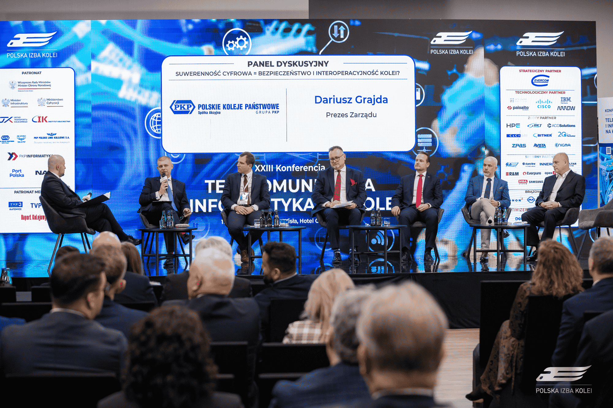 Moderatorem panelu był Marcin Grabarczyk (NASK PIB). W dyskusji udział wzięli przedstawiciele kluczowych spółek sektora kolejowego i instytucji branżowych: Dariusz Grajda (PKP S.A.), Krzysztof Drozdowski (PKP Polskie Linie Kolejowe S.A.), Leszek Stachowiak (PKP Informatyka), Marcin Karasiński (PKP Intercity), Dariusz Wojciechowski (PKP Telkol), Piotr Rachwalski (CPK) oraz Paweł Nogowicz (Polskie Towarzystwo Informatyczne).