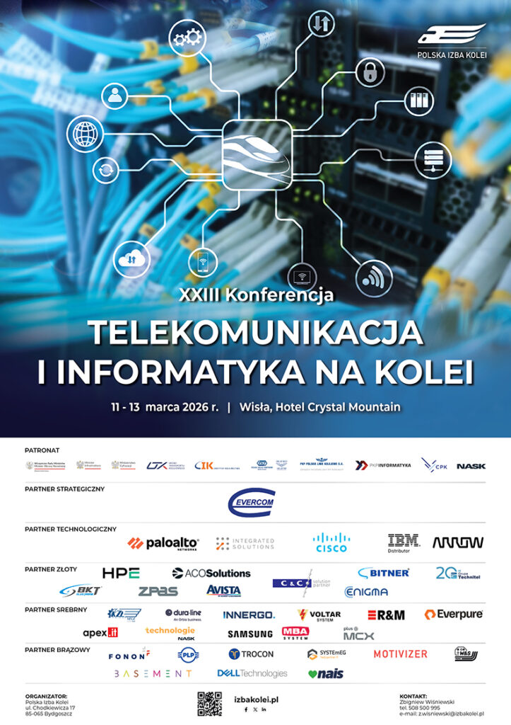 Ale nie tylko to. Zakres tematyczny konferencji obejmie również zarzadzanie geoprzestrzenią, systemami SDIP, PSIM oraz CCTV. Relację z poprzedniej edycji można obejrzeć pod linkiem: https://izbakolei.pl/xxii-konferencja-telekomunikacja-i-informatyka-na-kolei/